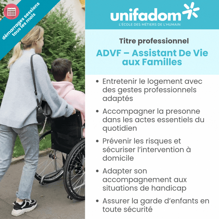 Le TP Assistant De Vie aux Familles (ADVF) forme aux gestes professionnels essentiels pour le maintien à domicile et la garde d’enfants, tout en développant la prévention des risques et la communication adaptée.